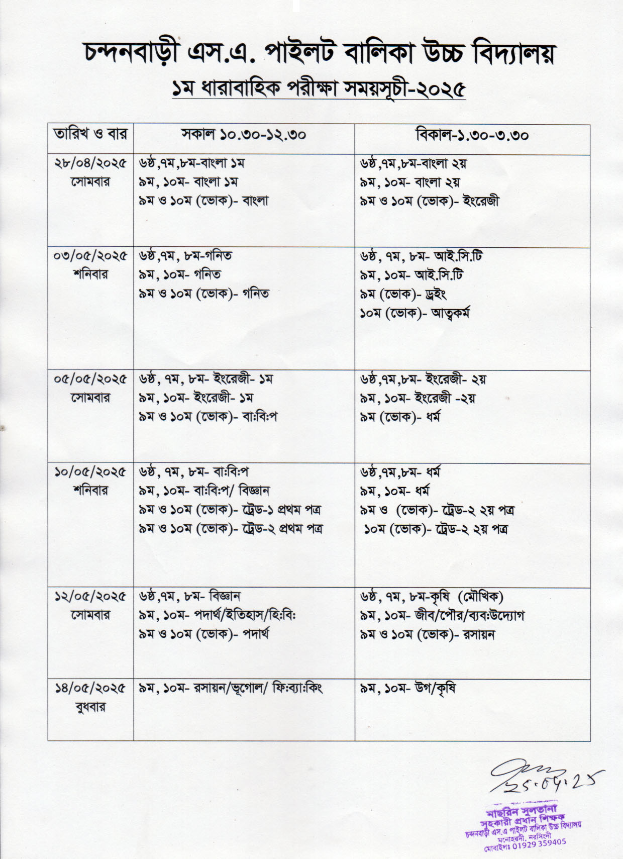 Subject : ১ম ধারাবাহিক পরীক্ষা-২০২৫ এর সময়সূচী
