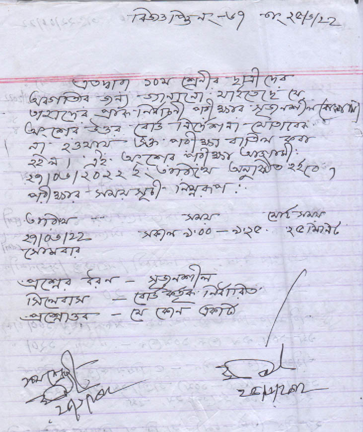 ১০ শ্রেনীর ছাত্রীদের বাংলা পরীক্ষা স্থগিত প্রসঙ্গে।